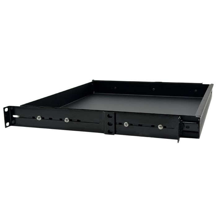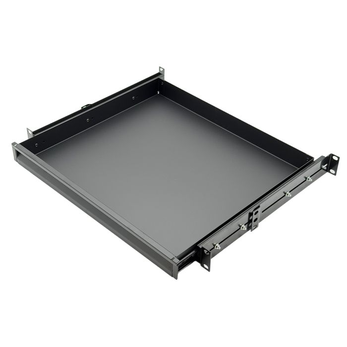 Deze lade is vervaardigd uit 1.2 mm staal en afgewerkt in zwart, wat zorgt voor een duurzame en professionele constructie die bestand is tegen intensief gebruik in AV- en racktoepassingen.
