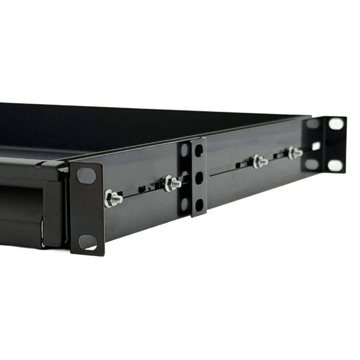 Dankzij de standaard 19″ breedte past deze tray naadloos in flightcases, AV-racks, serverkasten of technische modules, en vormt hij een praktische toevoeging aan elke technische of installatieomgeving waar toetsenborden worden gebruikt tijdens configuratie, monitoring of technisch beheer.